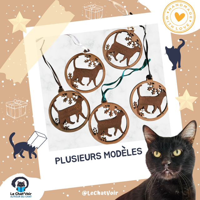 Boule de Noël, chat n°1 (bois naturel)